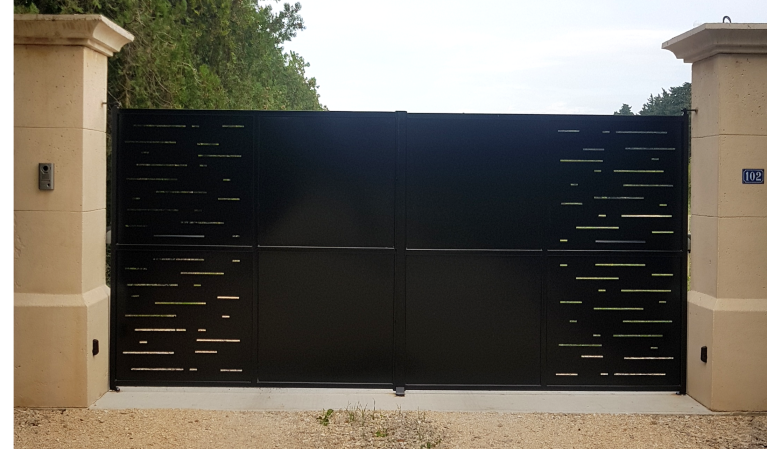 Portail Neuf à 2 vtx. h.2.20 m au centre et h.1.80 m au bord